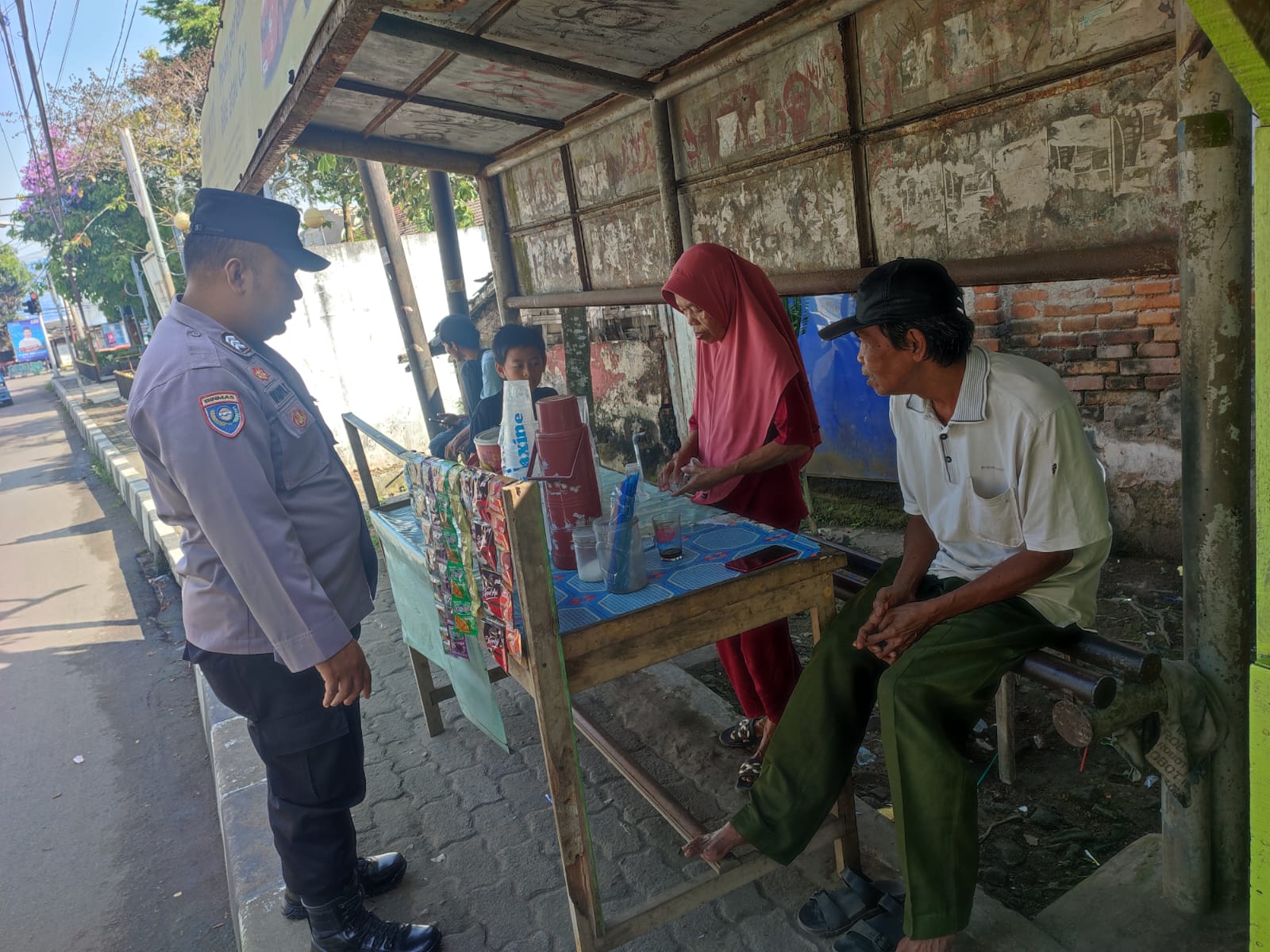 LEBAK,Suronews.com – Bhabinkamtobnas Polsek Rangkasbitung Polres Lebak BRIGADIR Wahyu Triono,giat Patroli dialogis dan temui pedagang Kopi di Kampung Kongsen.