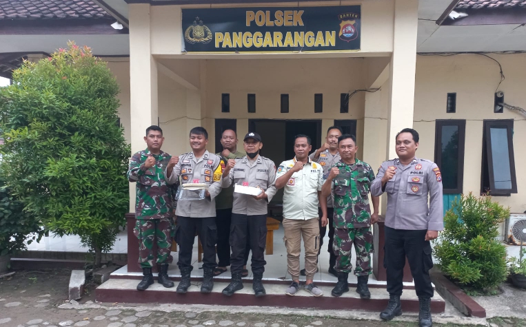 Personil TNI dari Koramil 0314 Panggarangan beserta Pemerintah kecamatan Panggarangan dan awak media datang ke Mako Polsek Panggarangan dengan membawa kue bule merupakan sebagai bentuk penghormatan.