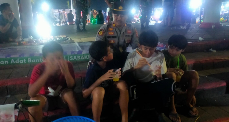 Seperti halnya yang dilakukan Bhabinkamtibmas Polsek Rangkasbitung AKP Pipih Iwan Hermansyah.SH,temui anak-anak di alun-alun Rangkasbitung.Sabtu malam 13 Juli 2024,pukul.21.15 Wib