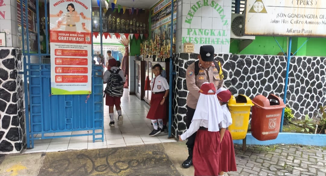 Suro-news.com, Jakarta Pusat – Sebagai wujud pelayanan prima Polri kepada masyarakat, khususnya dalam mendukung keselamatan pelajar dan menciptakan keamanan lingkungan sekolah, Bhabinkamtibmas Gondangdia Polsek Metro Menteng, Aiptu Kamidi, melaksanakan kegiatan pelayanan pagi dengan membantu murid SDN Gondangdia 01 masuk sekolah dan mengatur arus lalu lintas di depan area sekolah yang berlokasi di Jalan HOS. Cokroaminoto, Gondangdia, Menteng, Jakarta Pusat, Senin (24/11/2025).