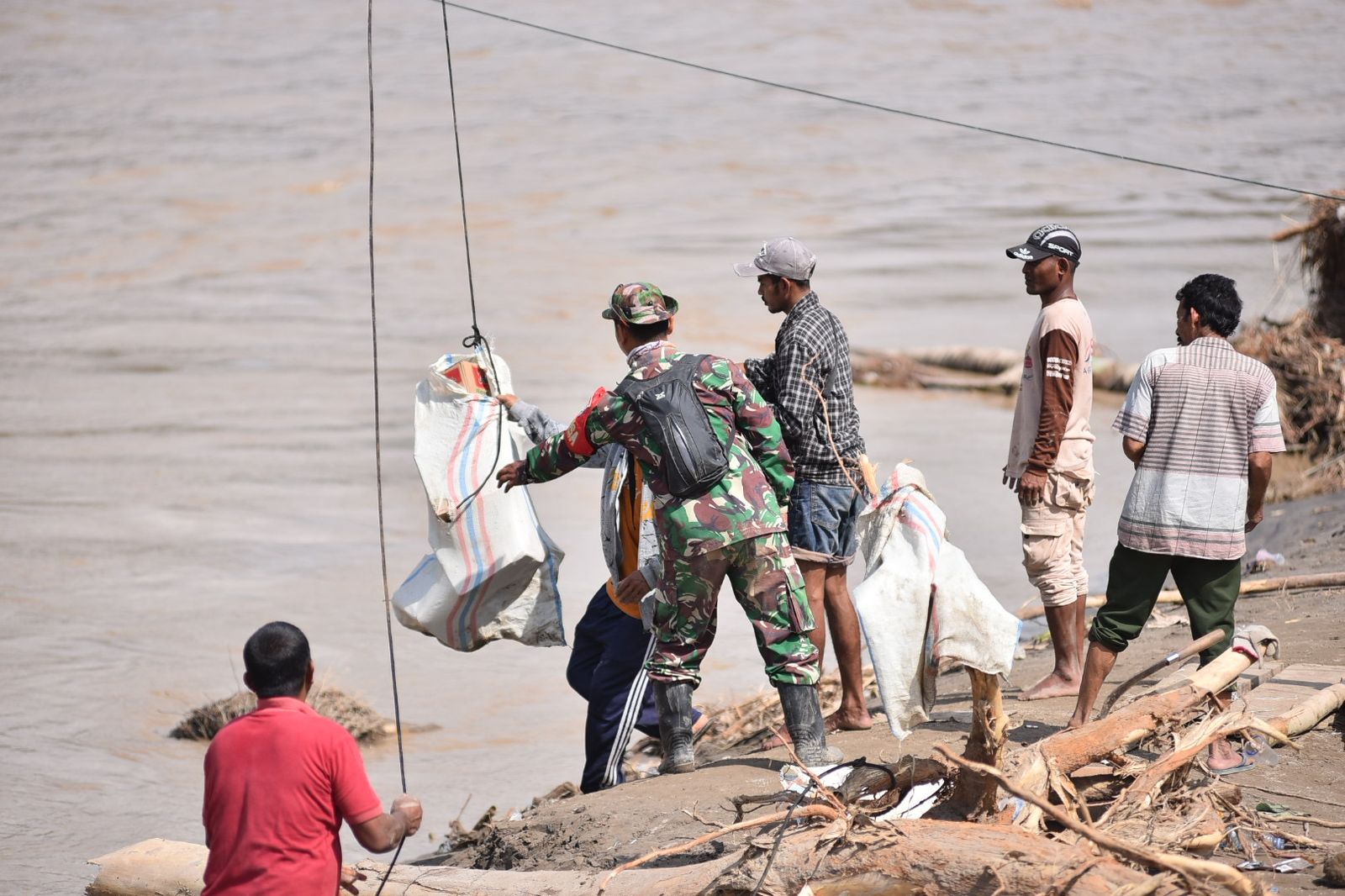 Kondisi ini membuat masyarakat, termasuk anak-anak dan orang tua, kesulitan melintas. Dengan sigap, para Babinsa turun langsung ke sungai membantu warga menyeberang satu per satu, memastikan keselamatan masyarakat di tengah arus yang tidak stabil.
