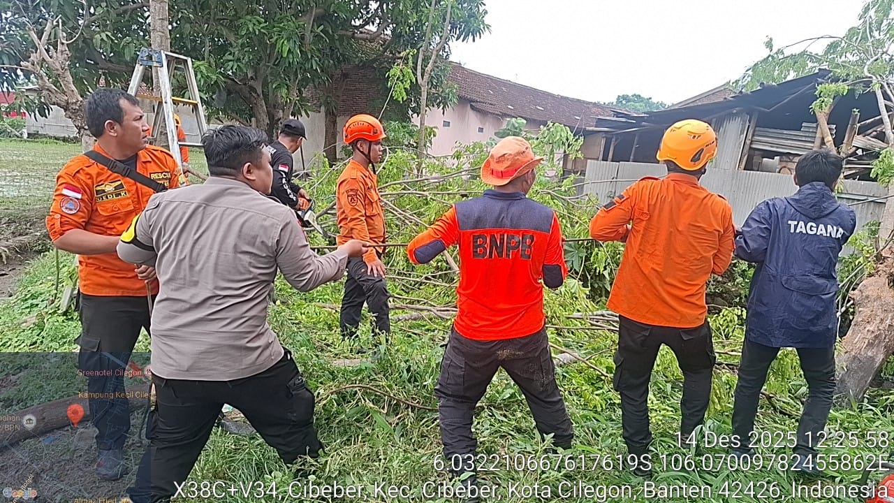 Suro-news.com Cilegon – Polsek Cibeber Polres Cilegon Menerima Informasi tentang adanya Pohon Tumbang yang menimpah Gubuk Bambu milik warga Cibeber Kota Cilegon dan Langsung Berkoordinasi dengan Bpbd Kota Cilegon dan Tagana untuk Memotong dan Membersihkan Pohon Tumbang Tersebut, Minggu (14/12).