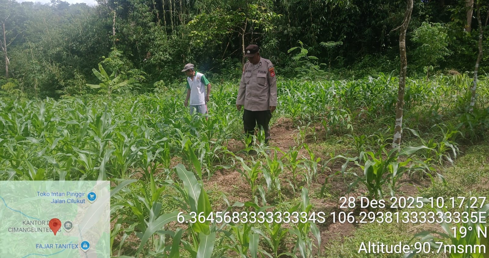 Suro-news.com LEBAK – Mendukung program Ketahanan Pangan,Kait Binmas Polsek Rangkasbitung Polres Lebak,AIPTU Heru Sasmito dan kelompok tani cek bibit pohon jagung dan bersihkan rumput liar di sekitaran pohon Jagung di Kampung Cilukut,Dewa Cimangeunteung, Kecamatan Rangkasbitung, Kabupaten Lebak, Minggu (28/12/2025).