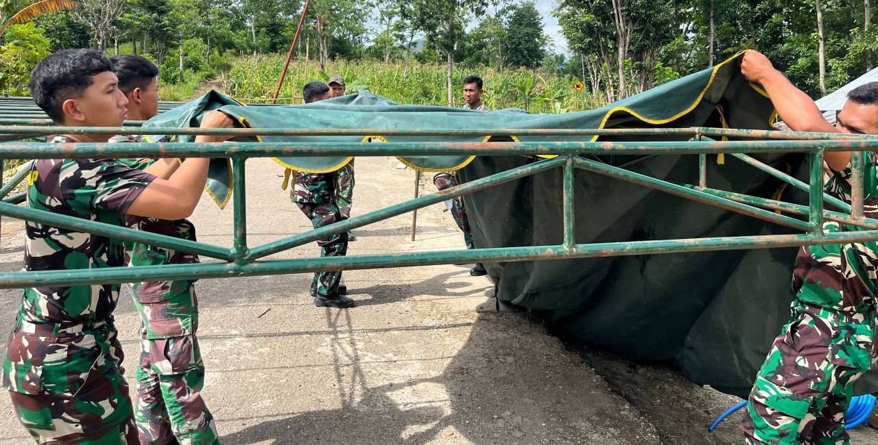 “Kami hadir bukan hanya untuk menjaga kedaulatan wilayah, tetapi juga untuk mengabdi kepada masyarakat. Membantu mendirikan tenda ini merupakan hal sederhana yang dapat kami lakukan untuk meringankan beban fisik maupun mental saudara-saudara kita yang sedang berduka,” ujarnya.
