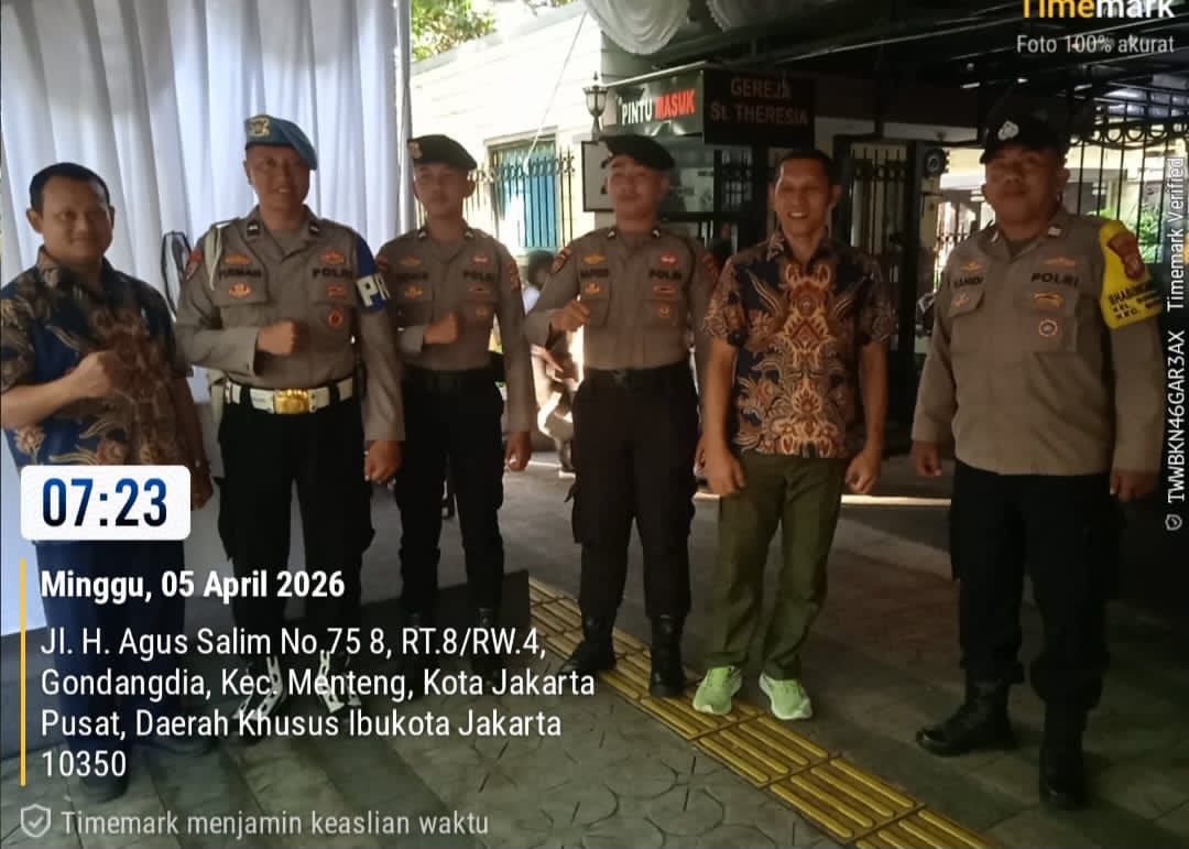 Suro-news.com,Jakarta Pusat – Polsek Metro Menteng melaksanakan pelayanan dan pengamanan kegiatan kebaktian Misa Paskah di Gereja St. Theresia Menteng, Jalan Gereja Theresia No. 2, Gondangdia, Menteng, Jakarta Pusat. Kegiatan pengamanan ini dilakukan guna memastikan umat Kristiani dapat menjalankan ibadah dengan aman, nyaman, dan penuh kekhusyukan dalam perayaan Hari Raya Paskah. Minggu (5/4/2026)