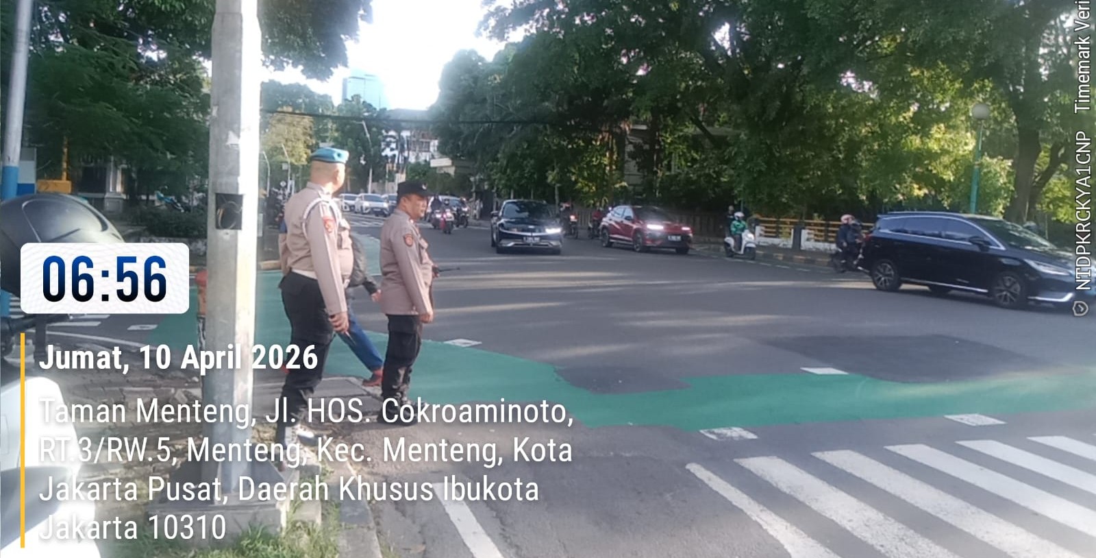Persimpangan Jalan HOS Cokroaminoto merupakan salah satu titik lalu lintas yang cukup padat di kawasan Menteng, khususnya pada pagi hari. Arus kendaraan dari berbagai arah, baik dari kawasan permukiman, sekolah, maupun pusat perkantoran, kerap mengalami peningkatan signifikan pada jam masuk kerja dan sekolah. Untuk itu, kehadiran personel kepolisian di lapangan menjadi langkah penting dalam menjaga kelancaran arus kendaraan sekaligus memberikan rasa aman kepada pengguna jalan.