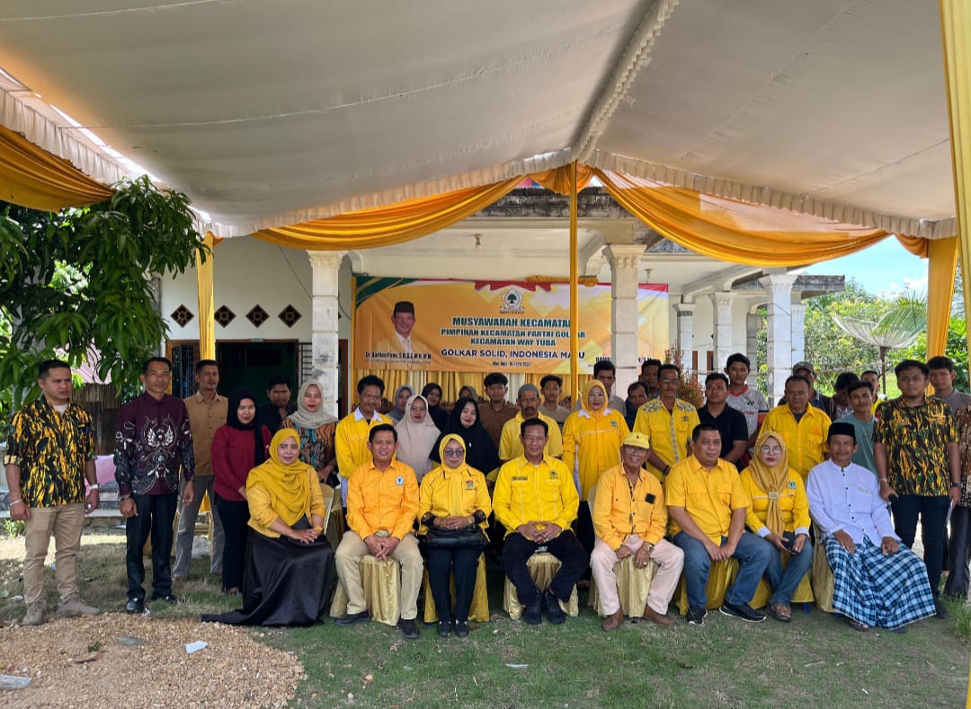 Suro-news.com, Way Kanan, — Upaya memperkuat mesin organisasi terus dilakukan Dewan Pimpinan Daerah (DPD) Partai Golkar Kabupaten Way Kanan hingga ke tingkat Kecamatan. Hal ini terbukti melalui agenda Musyawarah Kecamatan (Muscam) Pimpinan Kecamatan (PK) Partai Golkar Way Tuba yang berlangsung di Kecamatan Way Tuba, Kabupaten Way Kanan, Provinsi Lampung pada Minggu (19/4/2026) dengan penuh suasana semangat dan kekompakan.