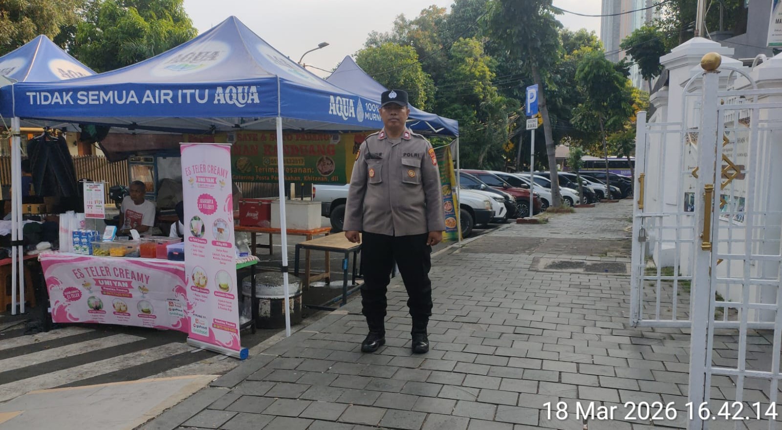 Polsek Metro Menteng Turun Langsung Amankan Pasar Takjil Masjid Cut Mutia Saat Ramadhan