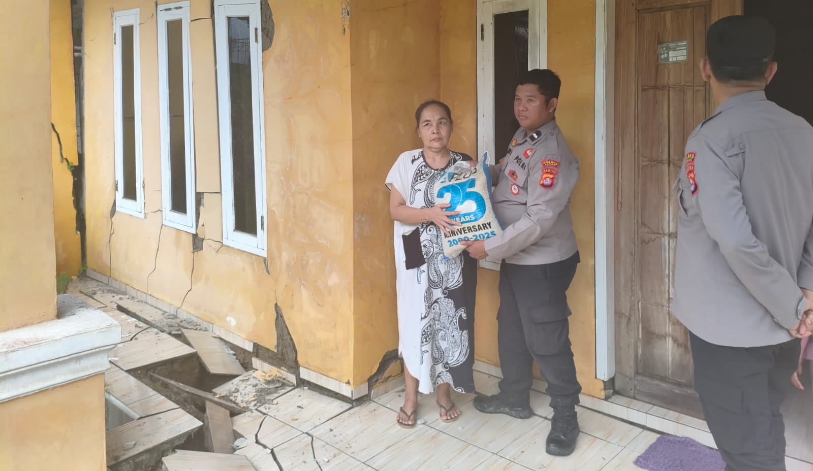 Kapolsek Rangkasbitung Polres Lebak Berikan Bantuan Dua Karung Beras Kepada Korban Bencana Alam Pergeseran Tanah di Kampung Cipancur