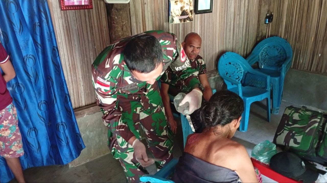 Suro-news.com,Natemnanu – Satgas Pamtas RI–RDTL Sektor Barat Yonarhanud 2 Kostrad melalui Pos Oepoli Pantai melaksanakan pelayanan kesehatan keliling gratis bagi masyarakat Desa