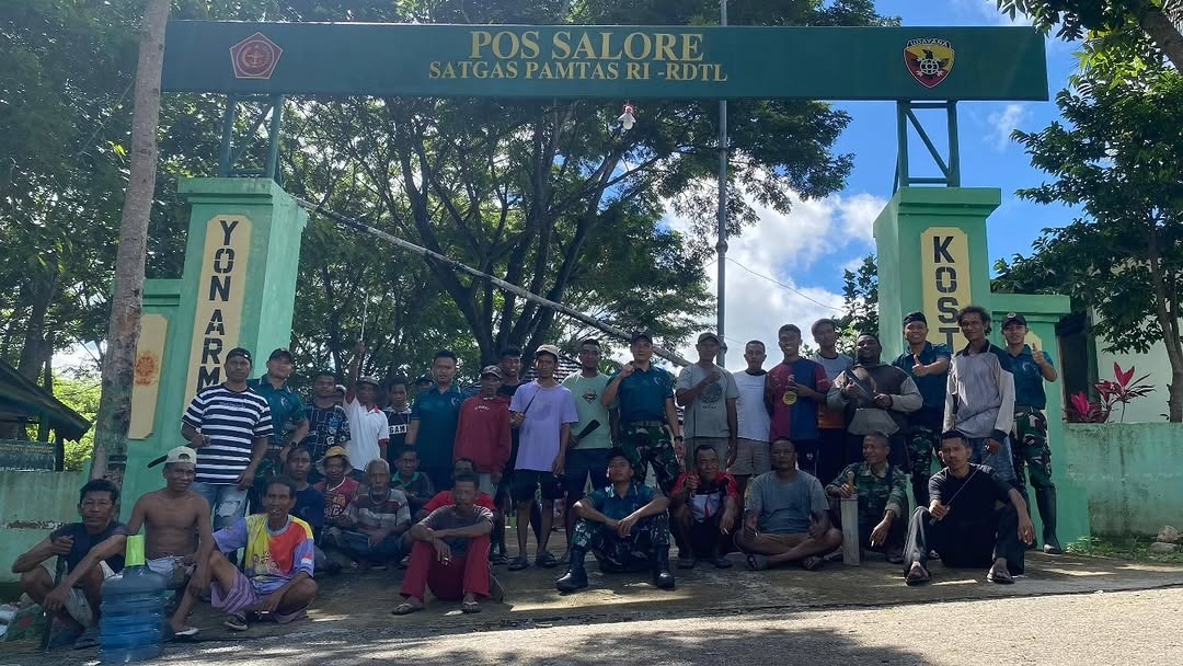 Suro-news.com,Belu – Satgas Pamtas RI–RDTL Sektor Timur Yonarmed 12 Kostrad melalui Pos Salore bersama warga Dusun Suliren, Desa Tulakadi melaksanakan kegiatan gotong