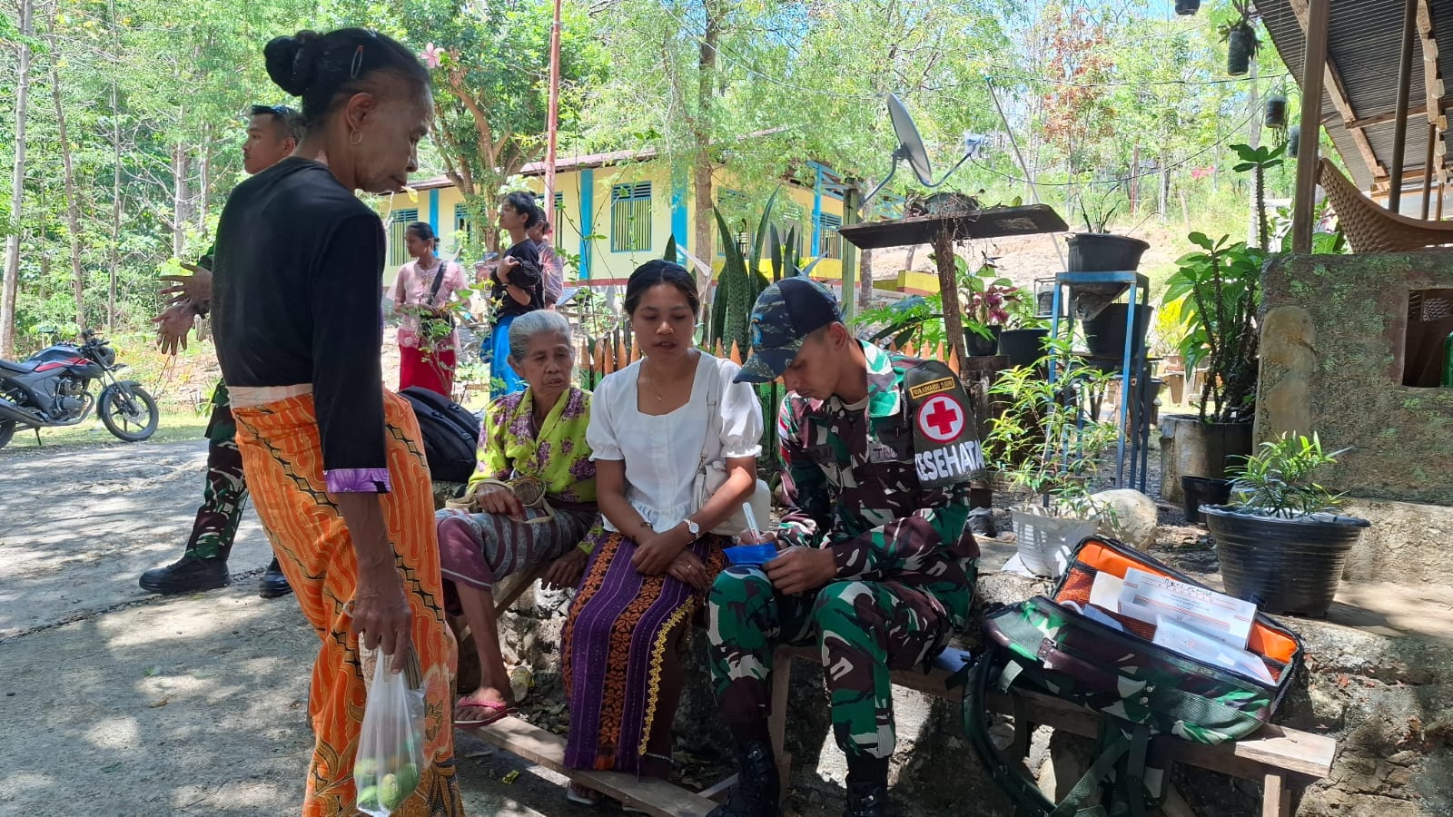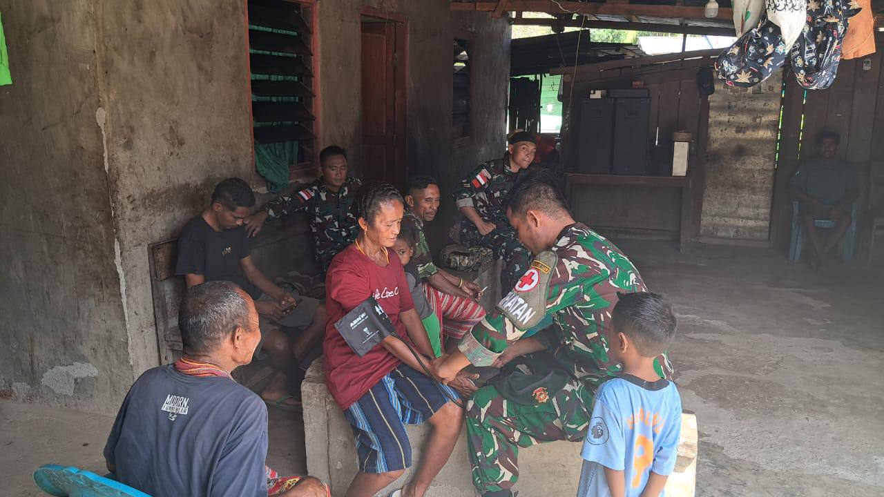 Suro-news.com Wini – Tim Kesehatan Satgas Pamtas RI-RDTL Sektor Barat Pos Wini berikan pertolongan dan pengobatan gratis menggunakan Program Unggulan Satgas yaitu