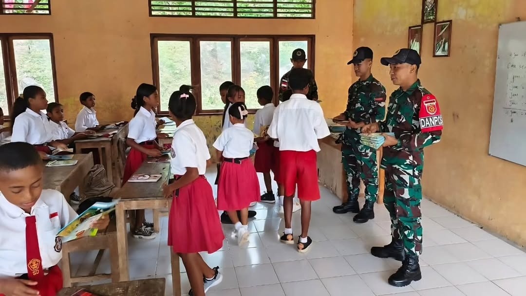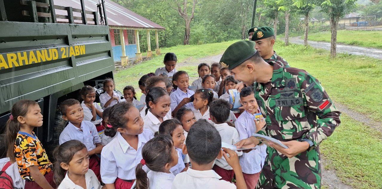 Aksi Nyata Yonarmed 12 Kostrad Cerdaskan Anak Bangsa di Ujung Negeri