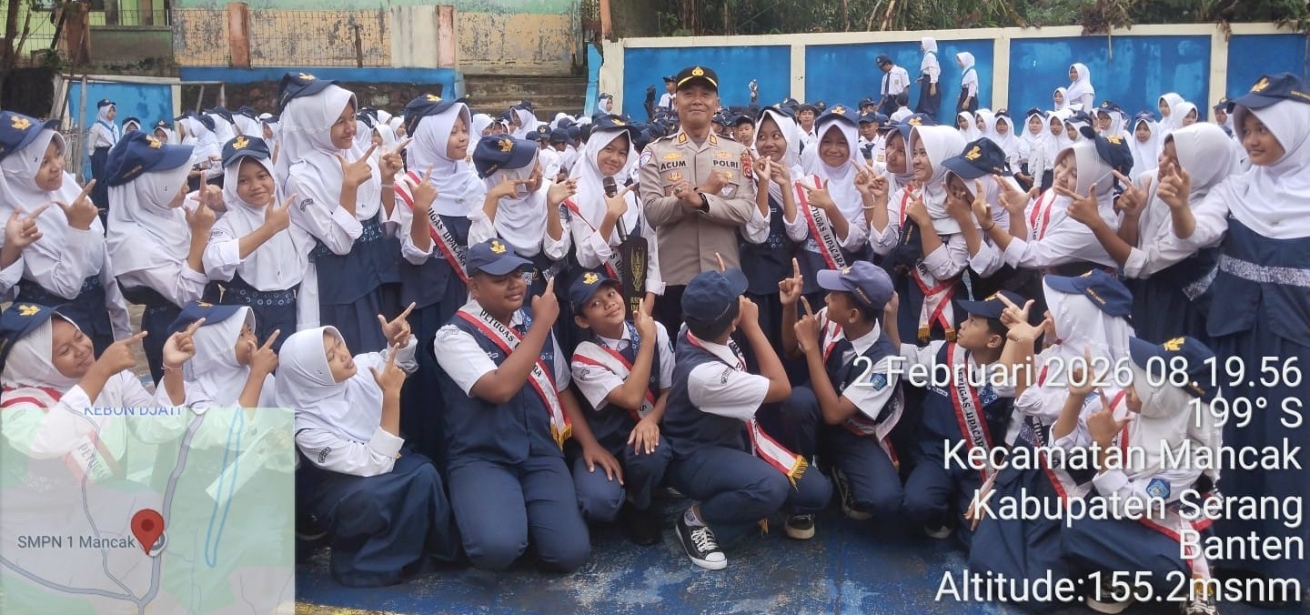 Kapolsek Bhabinkamtibmas Polsek Mancak Polres Cilegon Silaturahmi ke SMPN 1 Mancak Wujudkan Program Quick Wins Presisi Kapolri