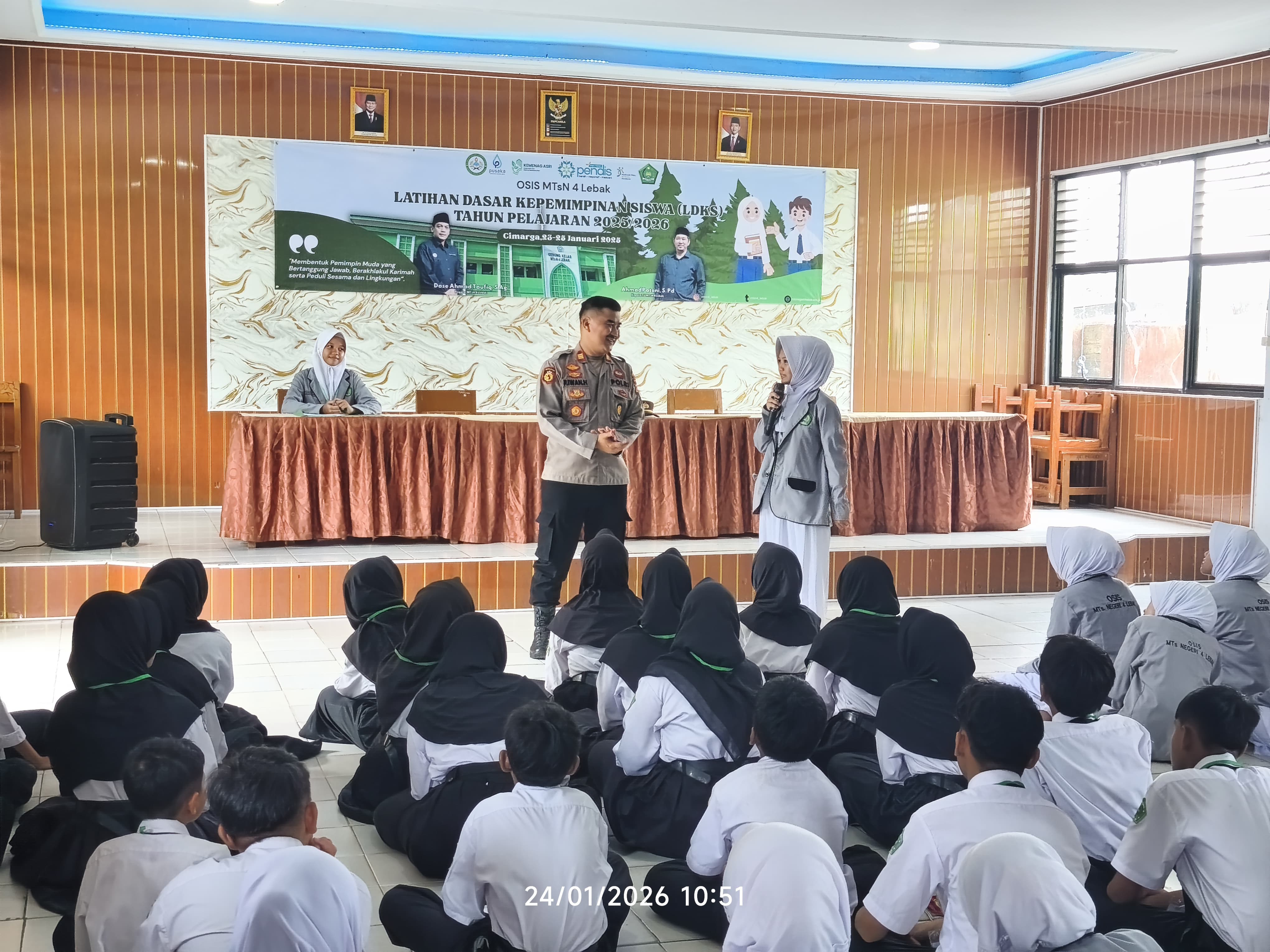 Suro-news.com,Lebak – Kapolsek Cimarga Polres Lebak menghadiri kegiatan Latihan Dasar Kepemimpinan Siswa (LDKS) yang diselenggarakan oleh MTSN 4 Cimarga untuk mendukung pembentukan
