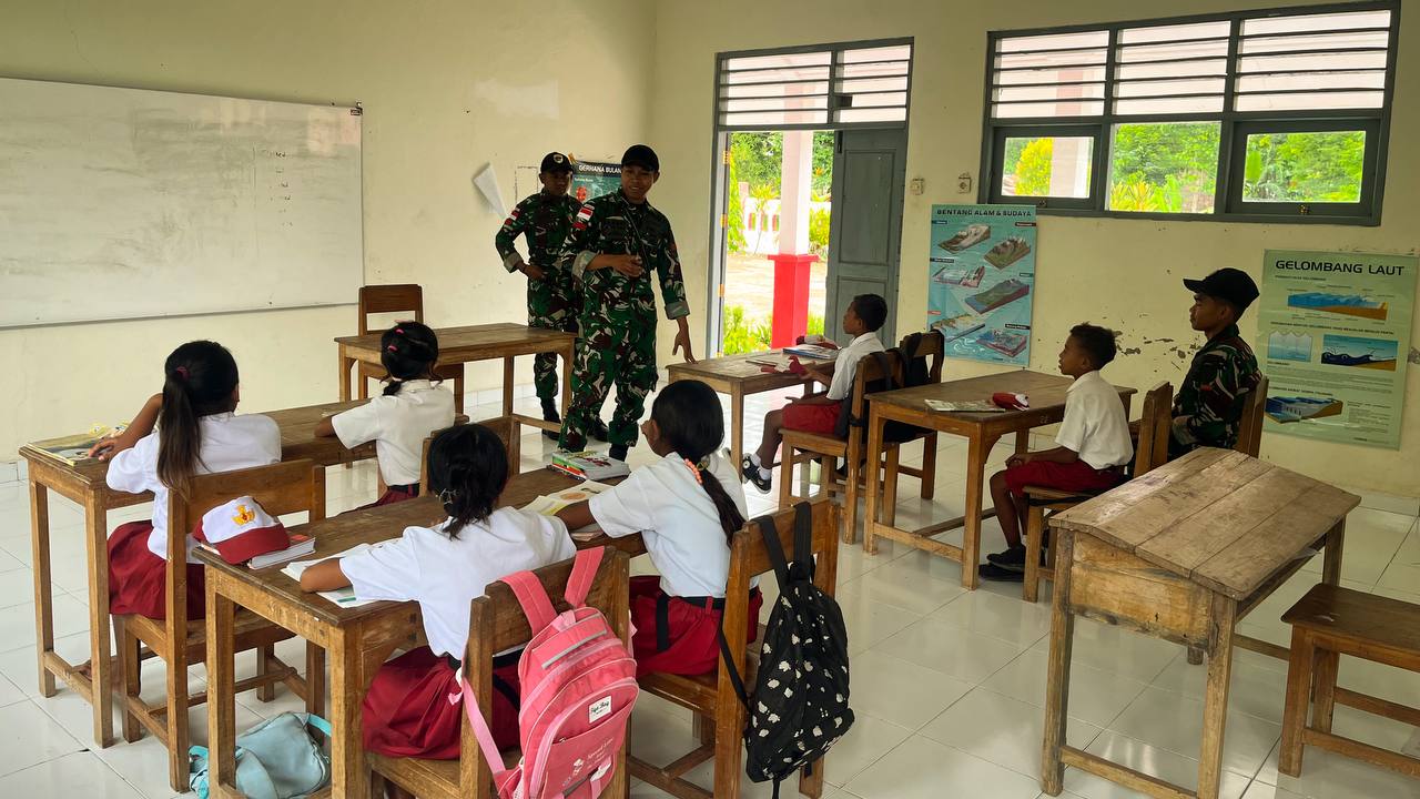 Tanamkan Jiwa Nasionalisme, Satgas Pamtas Yonarhanud 2 Kostrad Jadi Tenaga Pendidik di SDK Sunkaen