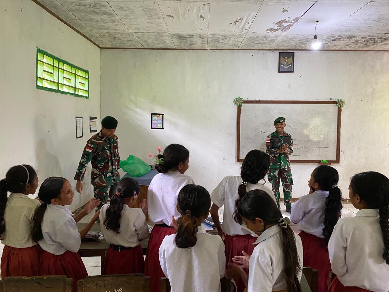 Suro-news.com,TTU – Satgas Pamtas RI–RDTL Sektor Barat Yonarhanud 2 Kostrad melalui Pos Baen secara aktif terjun langsung menjadi tenaga pendidik bagi siswa-siswi
