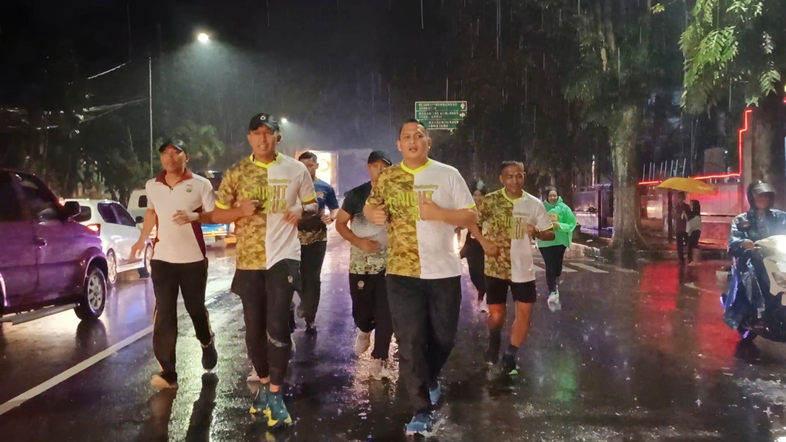 Hujan Tak Surutkan Semangat, Yonif 514 Kostrad Gelar Infantry Night Run Peringati HUT ke-77