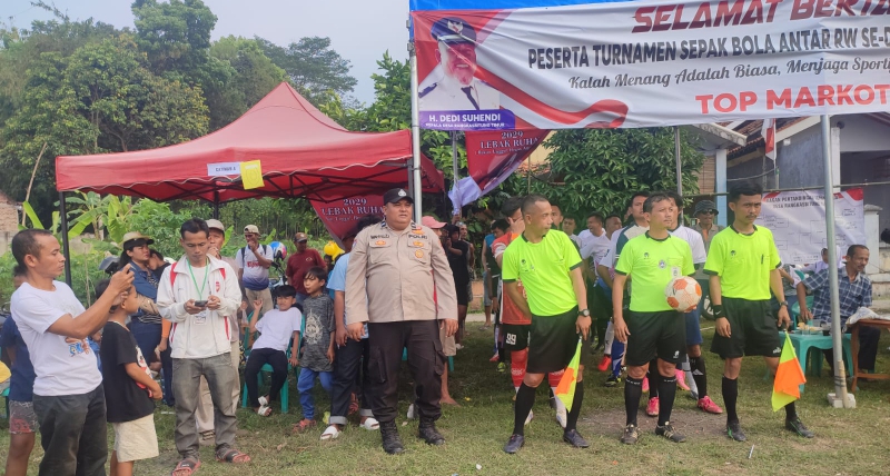 Bhabinkamtibmas Polsek Rangkasbitung Polres Lebak Pengamanan Sepak Bola Antar RW di Desa Rangkasbitung Timur