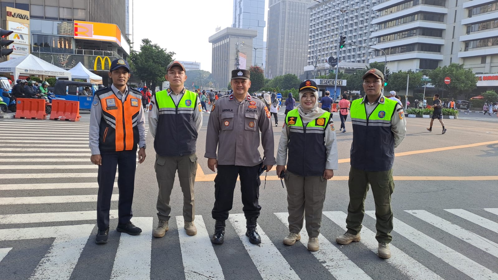 Kapolsubsektor Sarinah Bersama Tiga Pilar Mengamankan Giat Car Free Day Sarinah