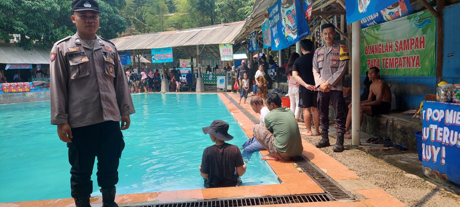 Anggota Polsek Cipanas Polres Lebak Sapa Pengunjung Tempat Wisata Pemandian Air Panas Cipanas