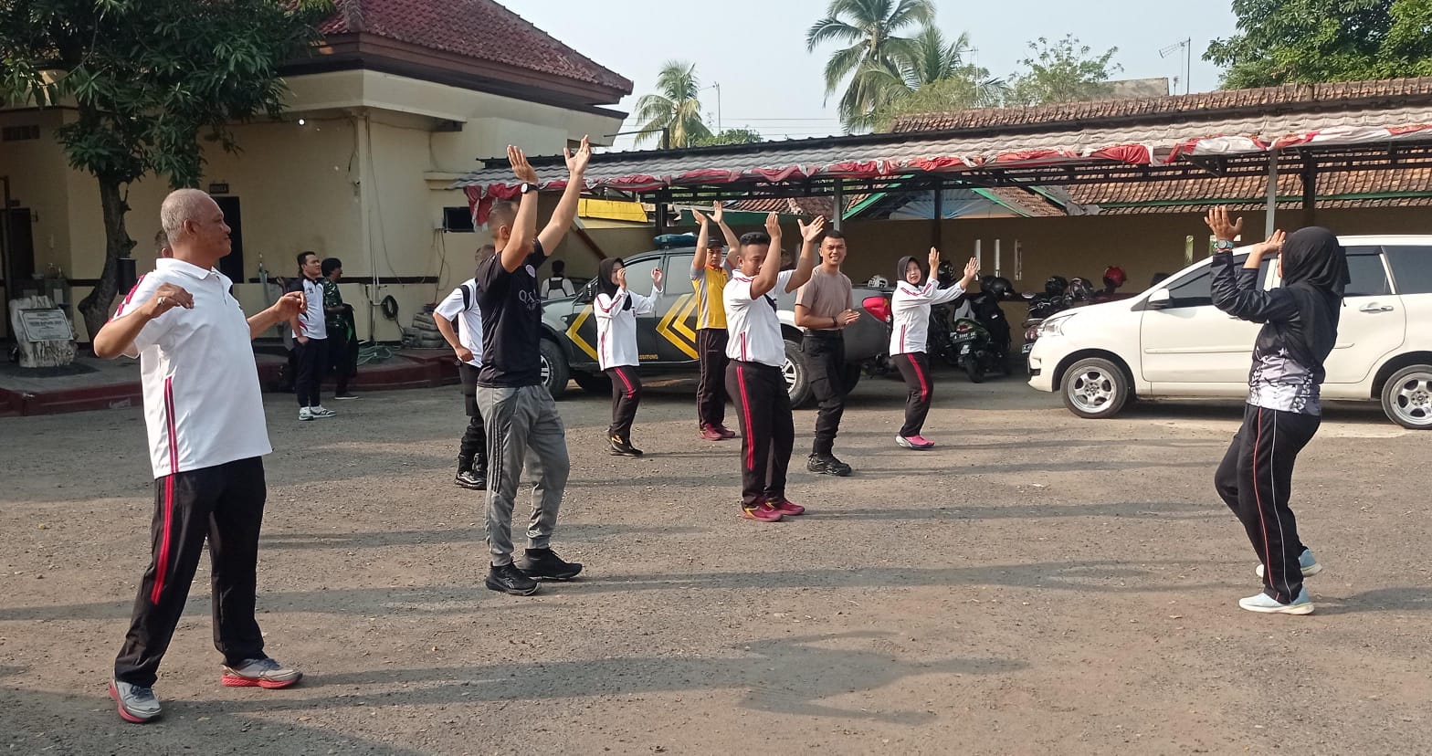 Siswa Latja SIP 53 Gelombang 1 T.A.2024 Gelar Olahraga Pagi Bersama Warga di Halaman Mapolsek Rangkasbitung