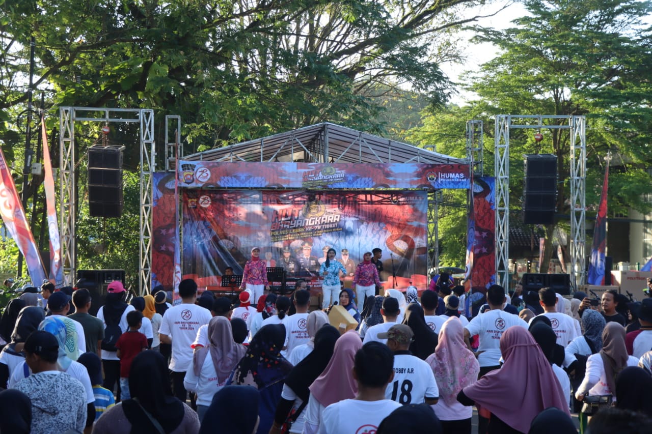 HUT Bhayangkara ke -78, Polres Lebak Gelar Jalan Santai dan senam Bersama di Alun-alun Rangkasbitung