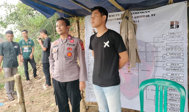 Lebak,Suronews.com – Personil Polsek Leuwidamar Polres Lebak Bripka Mustofa bersama Briptu Tri Agung melaksanakan Pengamanan Turnamen Sepak bola dalam Rangka Aniversary Orohol