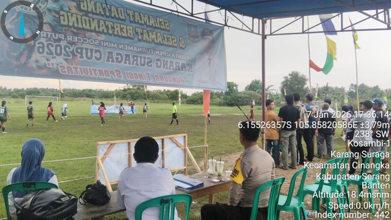 Suro-news.com Cilegon – Personel Polsek Cinangka Polres Cilegon Polda Banten melaksanakan monitoring dan pengamanan kegiatan Turnamen Open Sepak Bola Putri Tournament dan