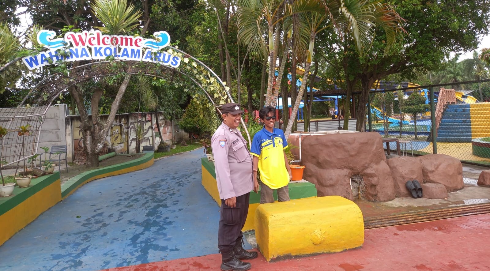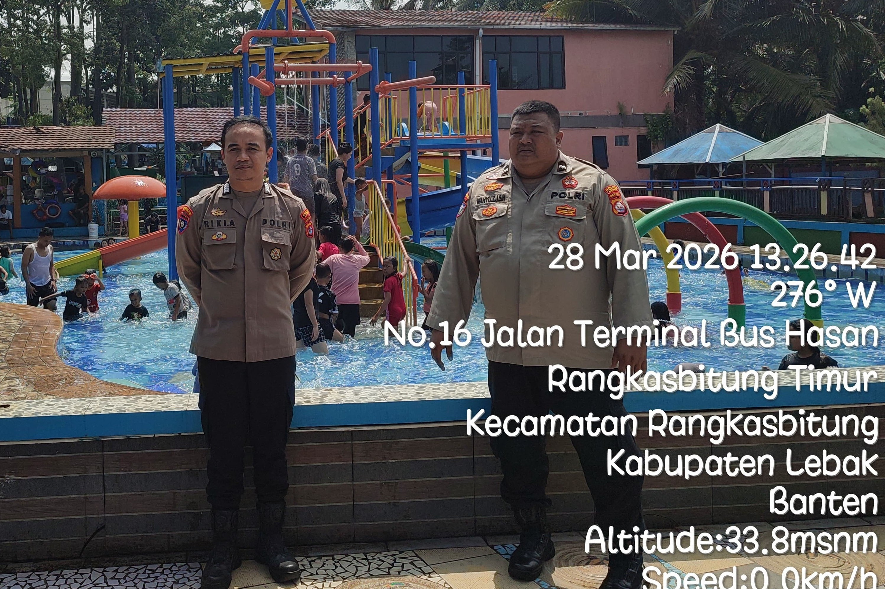 Libur Lebaran, Anggota Piket Polsek Rangkasbitung Polres Lebak Patroli Dialogis di Tempat Wisata Kolam Renang