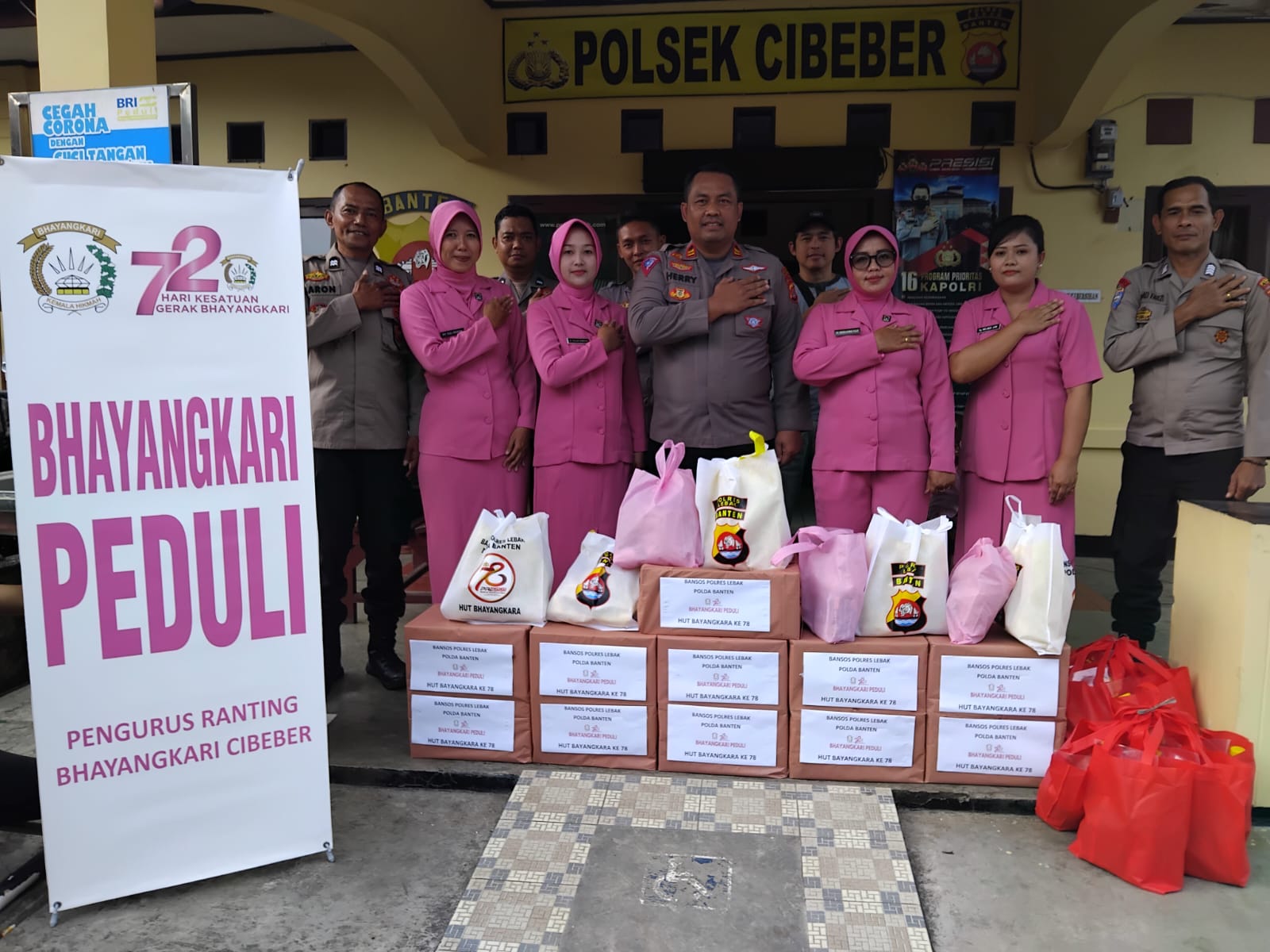 Kapolsek beserta Anggota Polsek Cibeber di dampingi Bhayangkari Melaksanakan Giat Bhakti Sosial
